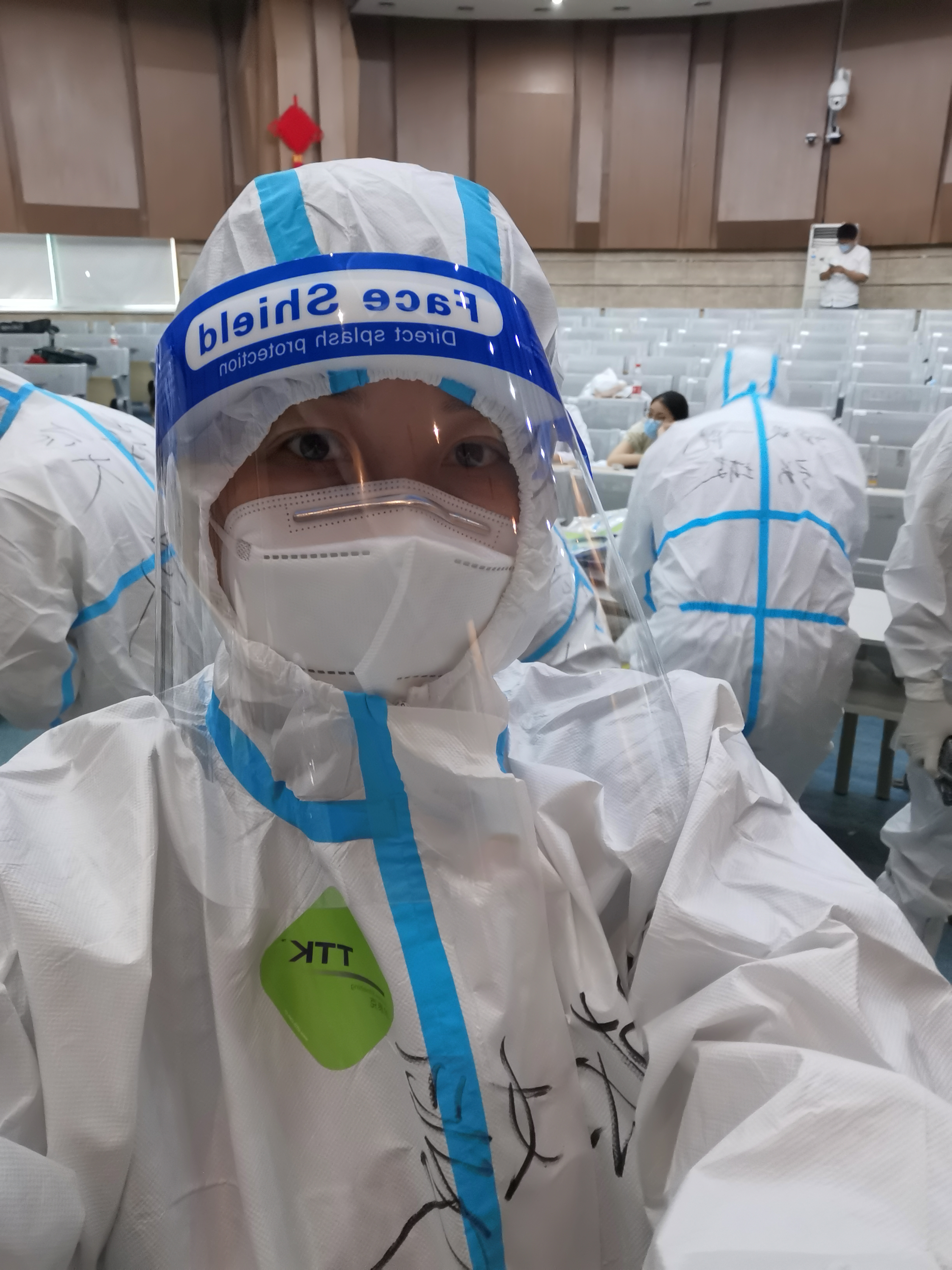 陳媛,黨支部副書記,疫情爆發(fā)以來,多次助力醫(yī)護(hù)人員參與核酸檢測(cè)。為節(jié)省一套防護(hù)服,連著兩個(gè)班次不換崗,不肯下來休息,每檢測(cè)一人,除做好系統(tǒng)登記、核對(duì)人員,還要提醒來檢人員配合動(dòng)作,以保障標(biāo)本采集的精準(zhǔn)和有效。